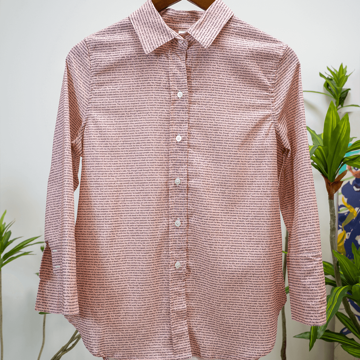 To preserve the Bible verse print quality, wash inside out in cold water and hang dry. Do not bleach. Iron inside out on low heat if needed.