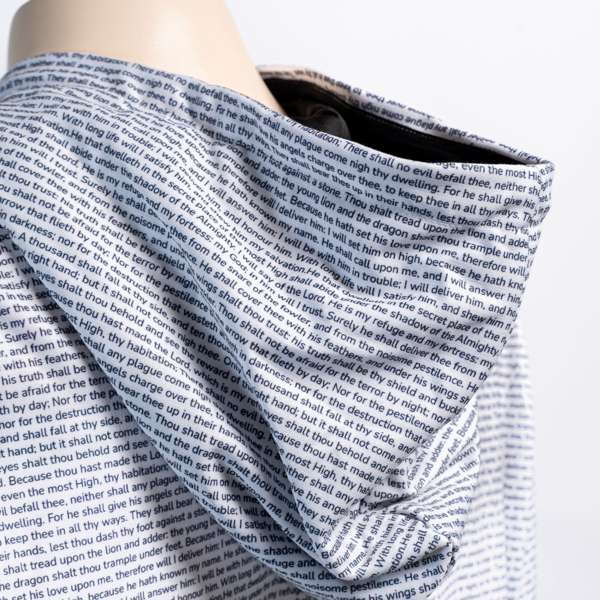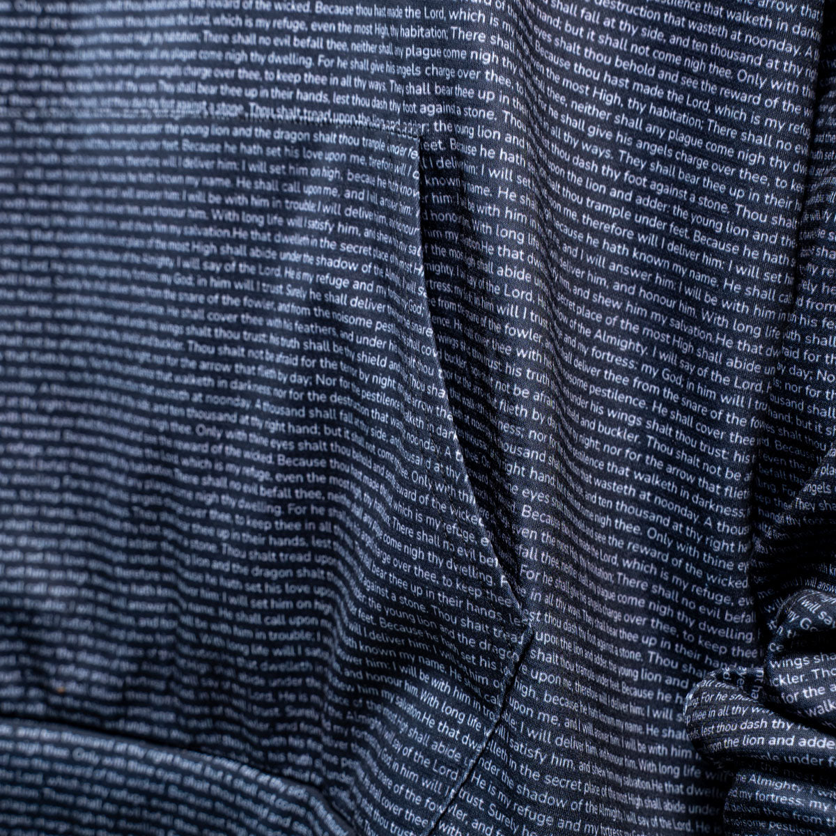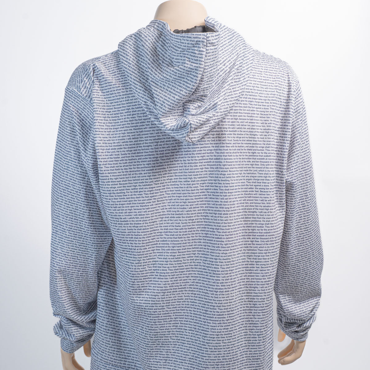 To preserve the Bible verse print quality, wash inside out in cold water and hang dry. Do not bleach. Iron inside out on low heat if needed.