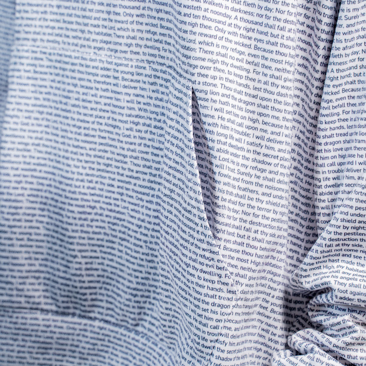 Note: Cotton requires reactive printing technology for vibrant, lasting designs. This specialized process takes extra time but ensures your verses stay beautiful wash after wash.