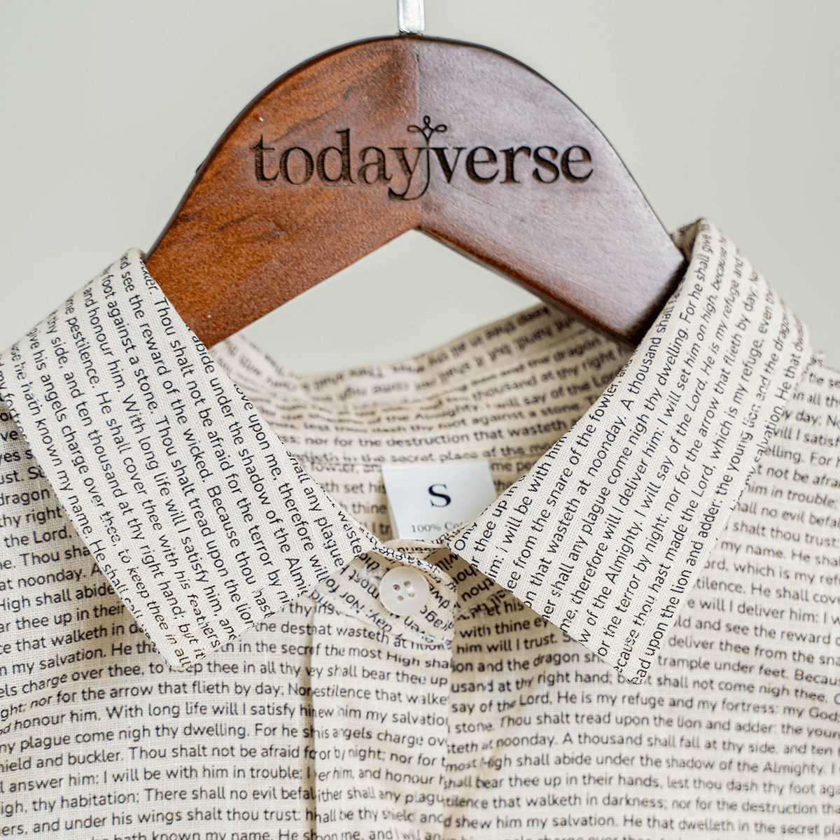 To preserve the Bible verse print quality, wash inside out in cold water and hang dry. Do not bleach. Iron inside out on low heat if needed.